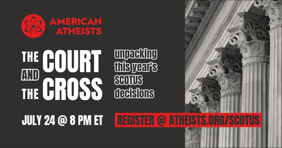 Join us for a breakdown of the major Supreme Court decisions from the 2024–2025 term that impact the First Amendment, religious equality, and the separation of religion and government. Our panel of legal experts will walk you through the key cases American Atheists monitored this term, highlight the amicus briefs we filed, explain the outcomes, and discuss what these rulings mean for your rights and the fight for secular government moving forward. Don’t miss your chance to be part of the conversation—our speakers will take your questions live after the presentation.